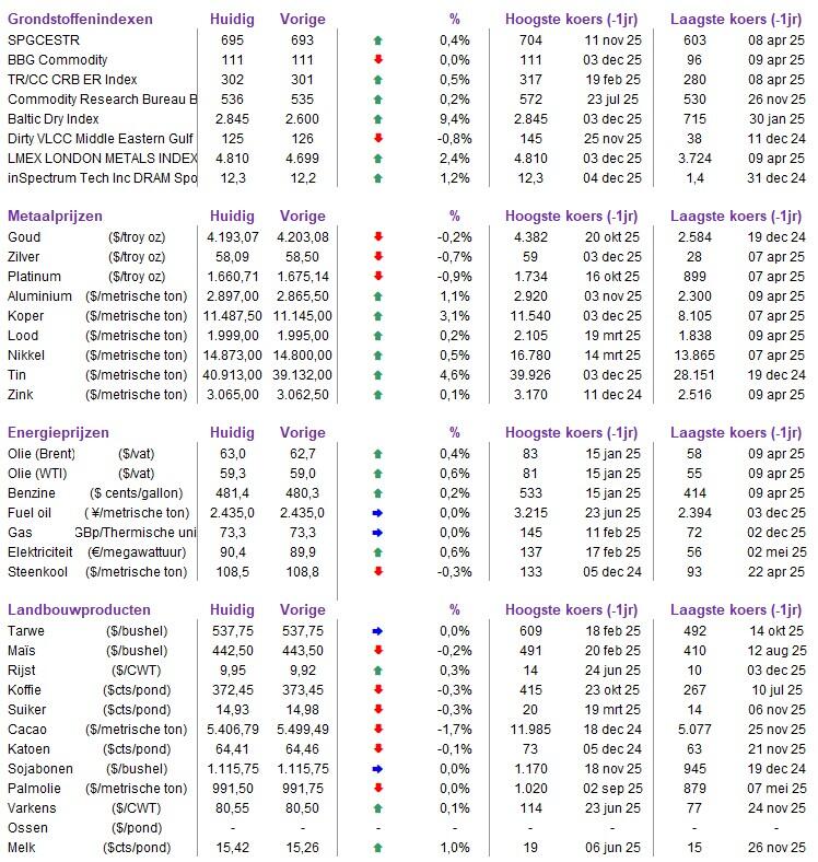 Rio Tinto: {{9454653, RIO TINTO PLC, RIO}} de Anglo-Australische mijnbouwer verhoogt zijn koperprognose voor 2025 naar 860.000 à 875.000 ton dankzij een sterke productie bij het Oyu Tolgoi-project in Mongolië, tegenover eerder 780.000 à 850.000 ton. Hoewel Rio Tinto vooral winst haalt uit ijzererts, verschuift de focus naar koper en mikt het tegen 2030 op 1 miljoen ton per jaar, inspelend op recordprijzen en de groeiende vraag door de energietransitie.