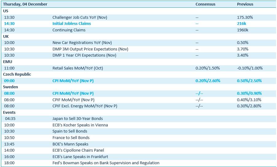 - Vandaag kijken we naar cijfers uit de Verenigde Staten, met name het aantal nieuwe werkloosheidsaanvragen, en het VK, met inzicht in de nieuwe autoverkopen en inflatieverwachtingen. De Eurozone voegt daar een update van de kleinhandelsverkopen aan toe, met als kers op de taart inflatiedata uit Tsjechië en Zweden.