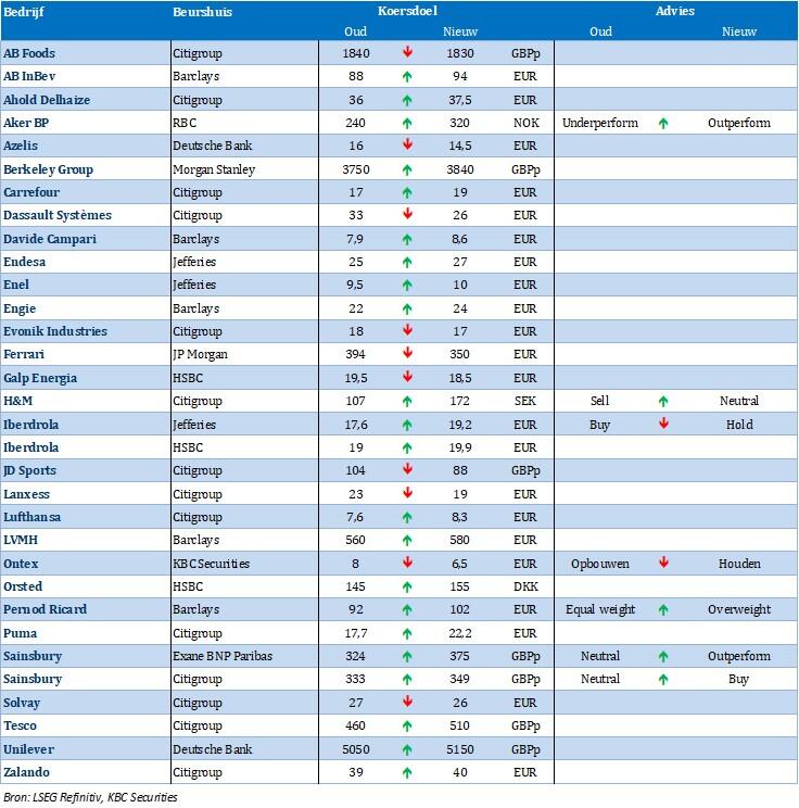 Deze blog bevat samenvattingen van aanbevelingen en onderzoeken van KBC Securities NV (https://research.kbcsecurities.com) en Reuters Ltd.