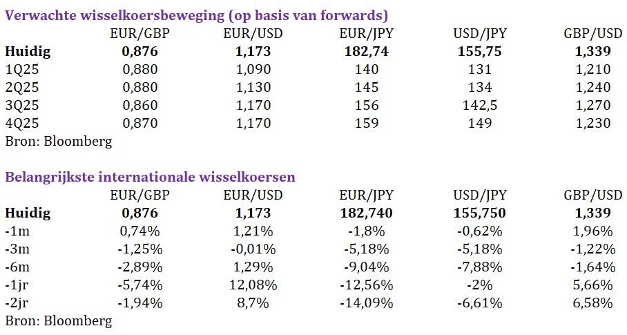 - De dollar verzwakte duidelijk tegenover de euro (€1= $1,1735), tot het laagste niveau sinds oktober. Dat is deels terug te voeren op commentaren van opmerkingen van ECB-president Lagarde over een mogelijke opwaartse bijstelling van de Europese groeiprognoses. De Amerikaanse 10-jaarsrente daalde met vier basispunten naar 4,12%, terwijl de 2-jaarsrente naar 3,52% zakte. In Duitsland bleef het kompas stabiel op 2,85% op 10 jaar.