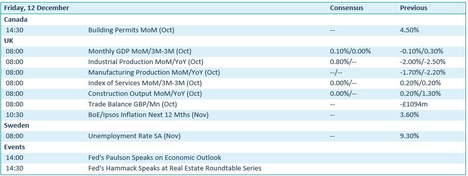 - De economische kalender heeft amper wat om het lijf. Enkel in het VK staat er wat nuttigs op de agenda. Zo bijvoorbeeld de industriële productie en de output van de maakindustrie, naast dienstenindex, de handelsbalans én een update van de inflatieverwachtingen voor de komende 12 maanden. In Zweden verschijnt de werkloosheid (nov) en in de VS mogen enkele Fed‑leden een speech afsteken.