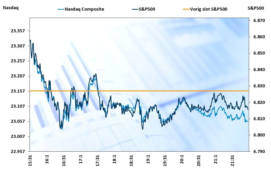- Na de verkoopgolf van vrijdag waarbij de S&P 500, Nasdaq en Russell 2000 meer dan 1% daalden, vervolgde Wall Street de neergang, al bleef de slotkoers iets boven de dagdieptepunten. De S&P500 en de Dow gingen 0,1% lager, tegenover 0,6% verlies voor de Nasdaq. Zwakke segmenten waren AI-infrastructuur, speculatieve aandelen, small-caps, crypto-gerelateerde aandelen en Chinese technologie.
