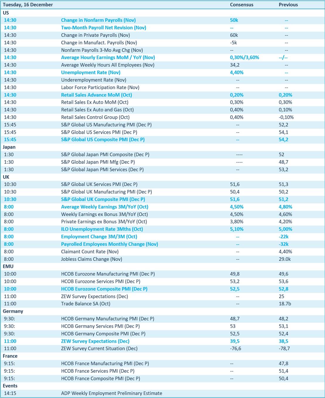 - In Europa kijken we verder uit naar de loonevolutie en de werkgelegenheid in het VK, naast een update van de ZEW-vertrouwensindicator voor zoals Duitsland als Europa. Maar vooral kijken we al uit naar rentebesluiten van de centrale banken, waaronder de ECB (stabiel op 2%). De Bank of England voert mogelijk wél een renteverlaging door van 4,0% naar 3,75%, terwijl ook de Riksbank en de Norges Bank een rapport mogen afleveren. En dat alles gaat hand in hand met een setje belangrijke data in de VS, waaronder het banenrapport en inflatiegegevens. En die zijn dan weer belangrijk voor het rentebeleid in 2026.