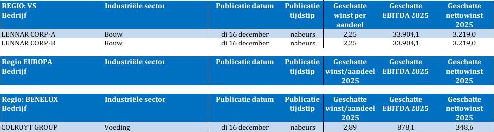 - Bedrijfsresultaten komen er vandaag van Colruyt Group en Lennar Corporation en daar moet u het dan maar mee doen.