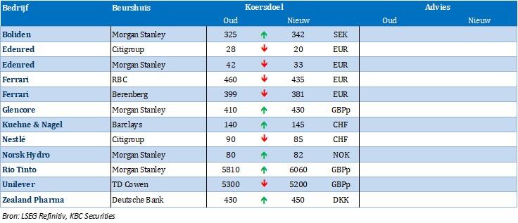 Deze blog bevat samenvattingen van aanbevelingen en onderzoeken van KBC Securities NV (https://research.kbcsecurities.com) en Reuters Ltd.
