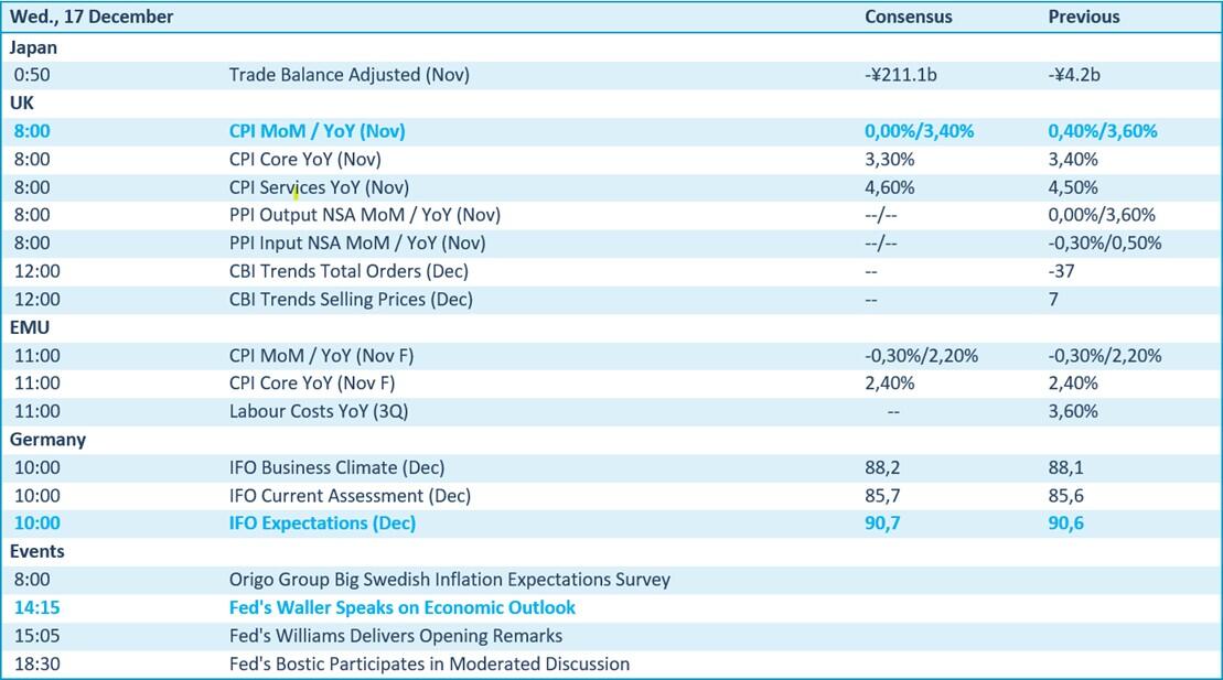 - Inflatie staat vandaag centraal op de economische agenda, al gaat het niet om zwaarwichtige cijfers. Zo komt het VK met data zoals de algemene CPI, de kerninflatie en de inflatie in de dienstensector, presenteert de Eurozone finale inflatiecijfers én de loonkosten voor het derde kwartaal en komt ook Zweden op de proppen met inflatieverwachtingen. Maar inflatie is niet iets waar de markten vandaag wakker van liggen. Wel van groei, en dus is de set van Duitse Ifo-indicatoren (business climate, current assessment en expectations) belangrijker. De VS brengt vandaag weinig naar tafel, behalve toespraken door Fed-leden Waller, Williams en Bostic.