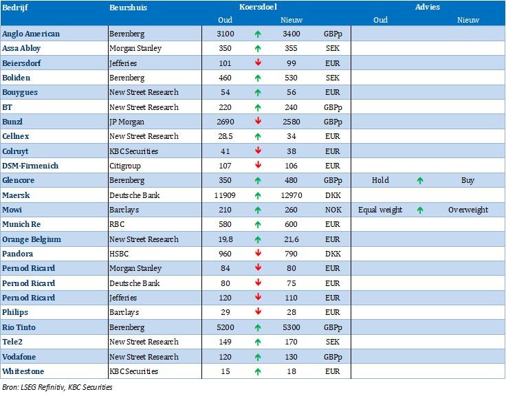 Deze blog bevat samenvattingen van aanbevelingen en onderzoeken van KBC Securities NV (https://research.kbcsecurities.com) en Reuters Ltd.