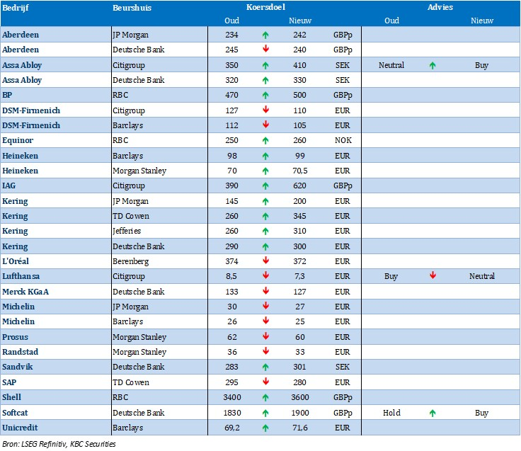 De KBC Securities-analist Kristof stelt vast dat Aalberts in het derde kwartaal een solide EBITA-prestatie neerzette, in lijn met de verwachtingen. In het segment Building leidde de beter dan verwachte omzetgroei echter niet tot margeherstel. Industry presteerde opnieuw sterk op het vlak van marges, ondanks een lichte omzetdaling. In Semicon blijft de margedruk aanhouden door het uitblijven van herstel in de klantenvraag. Gezien de aanhoudende zwakte in de eindmarkten, de neerwaarts bijgestelde margedoelstelling en de risico’s verbonden aan de blootstelling aan Duitsland en Frankrijk, blijft Kristof voorzichtig. Hij handhaaft zijn houden-aanbeveling en koersdoel van 33 euro.