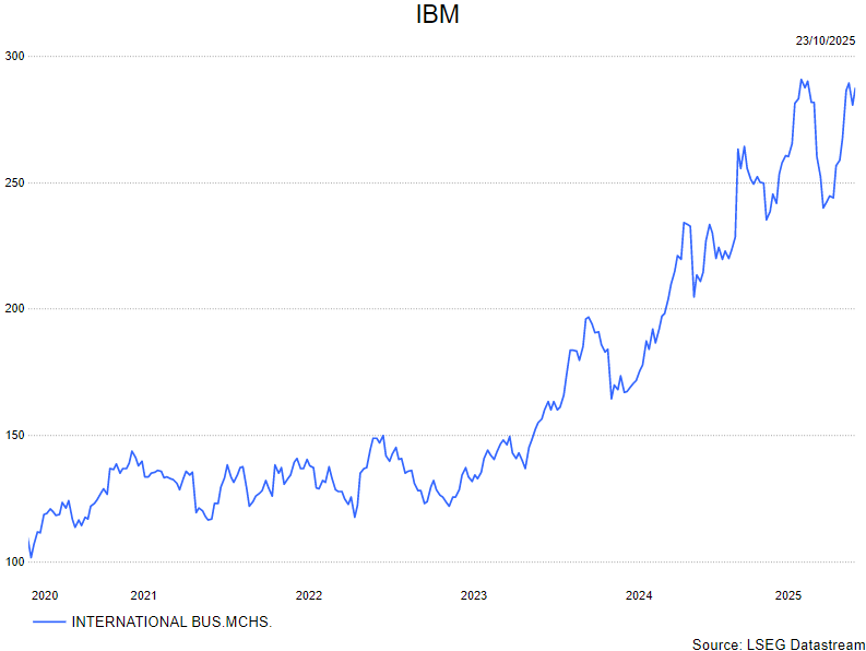IBM rapporteerde gisteren nabeurs over het derde kwartaal een omzet die circa 1% boven de verwachtingen uitkwam. De winst per aandeel kwam 7% boven de consensus uit met dank aan een solide kostencontrole.