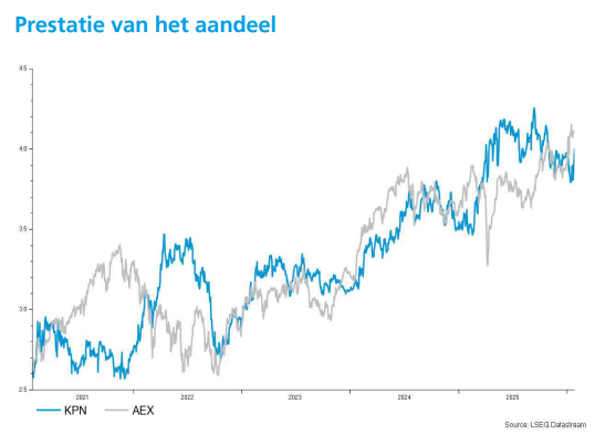 Michiel ziet in de cijfers van KPN een solide prestatie, met een vierde kwartaal dat op alle belangrijke parameters licht boven de verwachtingen uitkwam. Hoewel de gecommuniceerde winstvooruitzichten voor 2026 iets lager liggen dan gehoopt, blijven kasstromen, investeringsniveau en aandeelhoudersvergoedingen volledig volgens plan. Declercq handhaaft daarom zijn "Houden"-aanbeveling en een koersdoel van 4,2 euro voor KPN.
