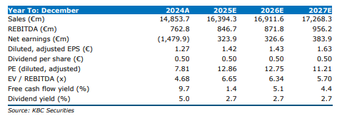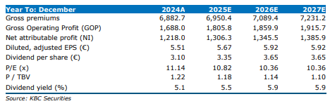Het operationeel resultaat kwam uit op 1.637 miljoen euro, opnieuw boven zowel de KBC Securities‑raming (1.530 miljoen euro) als de consensus (1.600 miljoen euro).