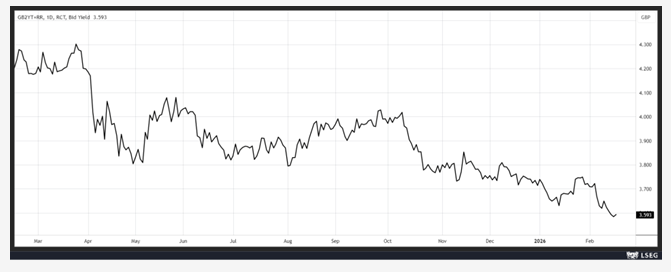Het werkloosheidspercentage in het Verenigd Koninkrijk bereikte in het laatste kwartaal van 2025 het hoogste niveau in meer dan tien jaar (buiten de pandemie), namelijk 5,2%. Een tweede aanwijzing die de kans op een renteverlaging in maart verhoogt, is dat de jaarlijkse loonstijging — exclusief bonussen — vertraagde naar 4,2% in het vierde kwartaal, tegenover 4,4% in het derde kwartaal.