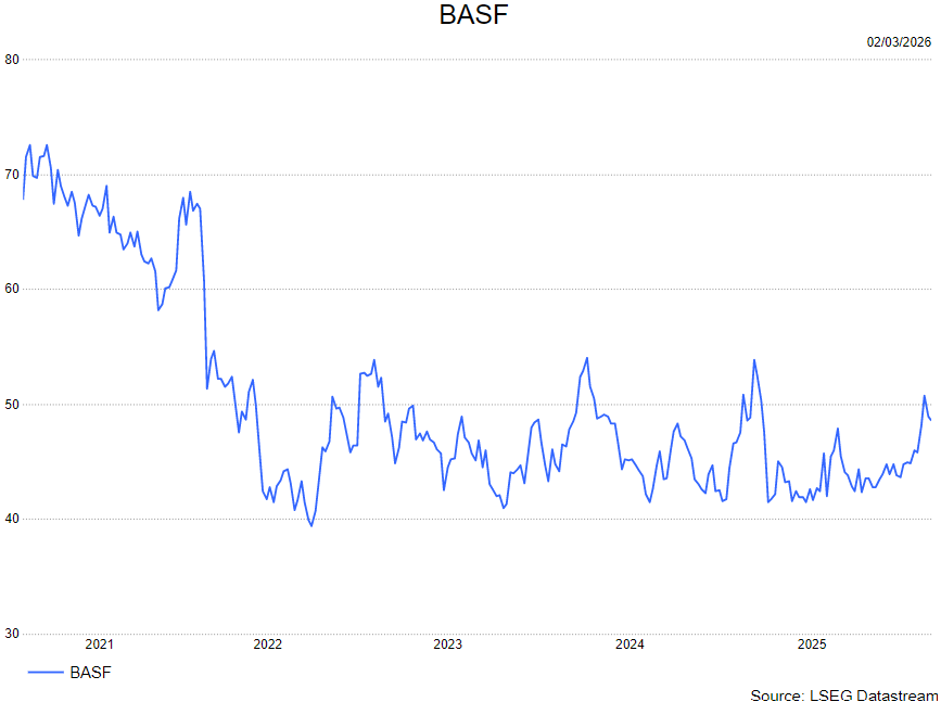 BASF boekte in het vierde kwartaal opnieuw winst op gerapporteerde basis, maar de onderliggende operationele trend bleef duidelijk onder druk staan. De vooruitzichten voor 2026 liggen licht onder de marktverwachtingen, terwijl het concern zijn kostenbesparingsprogramma verder verscherpt. Dat zegt KBC Securities‑analist Guglielmo Filangerie, die ondanks de uitdagingen zijn koopadvies behoudt maar wijst op de noodzaak van verdere herstructurering.