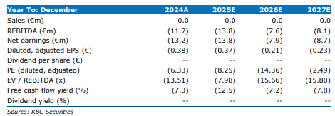 KBC Securities plaatst daarom de aanbeveling en het koersdoel onder herziening. De vorige inschatting was een “Houden”-aanbeveling met een koersdoel van 2,4 euro.