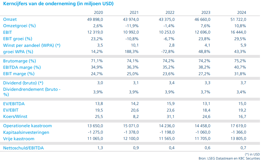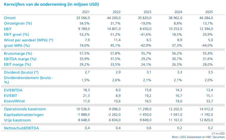 KBC Securities-analist, Kurt Ruts, behoudt de kopen-aanbeveling en koersdoel van 300 dollar.