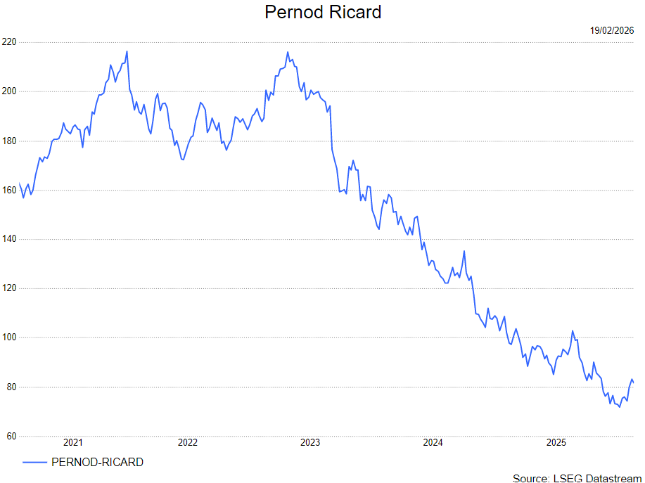 Alcohol blijft anno 2026 nog steeds niet het meest gegeerde product en Pernod Ricard (met vooral een sterke blootstelling aan cognac) voelt nog steeds deze druk. Die druk zal met deze resultaten niet weggenomen worden, maar KBC Securities ziet het ook niet verergeren. En dat is het meest optimistische plaatje dat er op dit moment mag verwacht worden. Hoewel de VS en China, twee zeer belangrijke afzetmarkten, nog steeds zwak presteren is er wel een stelselmatige verbetering op te tekenen in de overige markten. Vooral Indië kan aangehaald worden en met een nieuwe handelsdeal tussen EU en Indië kan dit op termijn uitgroeien tot een belangrijke groeipijler.