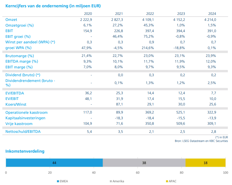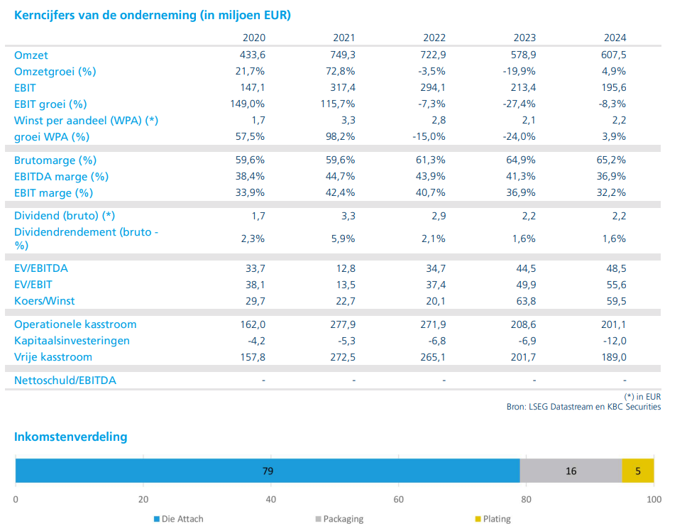 Die combinatie van investeringen en kostenbeheersing moet toelaten om de aangepaste EBIT in 2026 te laten uitkomen tussen 10 en 12 miljoen euro. Dat impliceert een verdere verbetering tegenover eerdere jaren, al blijft de winstgevendheid onderhevig aan uiteenlopende evoluties per divisie.