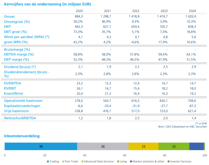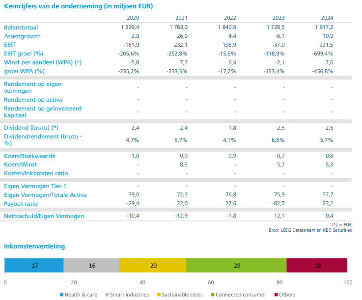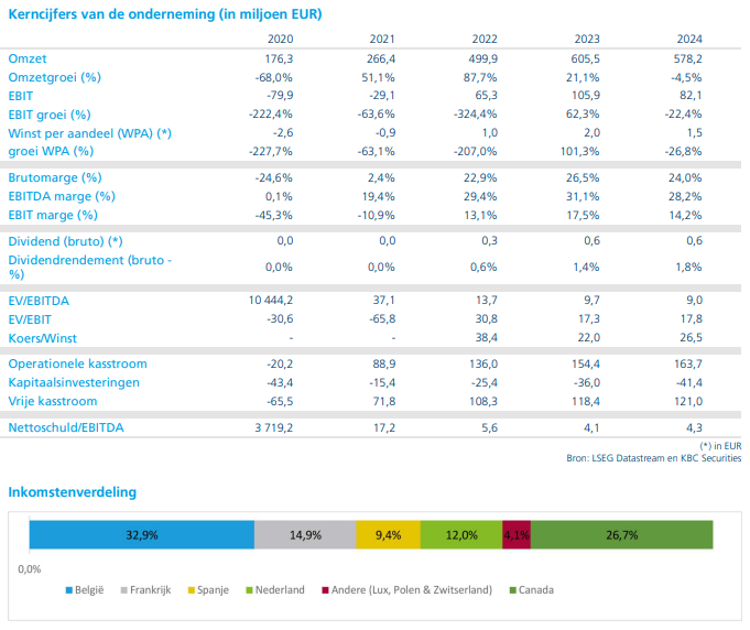 Het voorgestelde dividend bedraagt 1,05 euro per aandeel, iets onder de verwachting (1,16 euro). De schuldgraad (nettoschuld/EBITDA) bleef stabiel op 1,5x.