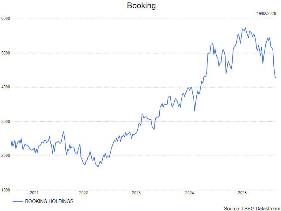 Booking Holdings: Booking Holdings overtreft de verwachtingen voor de winst in het vierde kwartaal. De aangepaste winst bedraagt 48,80 dollar per aandeel, boven de gemiddelde analistenverwachting van 48,47 dollar. De omzet en brutoboekingen groeien stevig dankzij internationale reislust. Het bedrijf kondigt ook een aandelensplitsing van 25 tegen 1 aan.