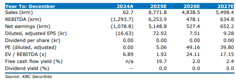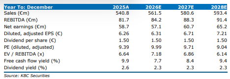 Tegelijk zijn veel positieve katalysatoren intussen in de koers verrekend. Met de korting op historisch lage niveaus verwacht KBC Securities dat het opwaarts potentieel op korte termijn beperkter wordt. Daarom werd de aanbeveling verlaagd van "Kopen" naar "Opbouwen", met oog voor verdere uitvoering van de strategie en de resultaten over 2025.