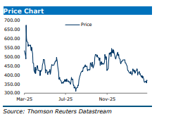 Andrea heeft een houden-aanbeveling en koersdoel van 300 Zwitserse frank.