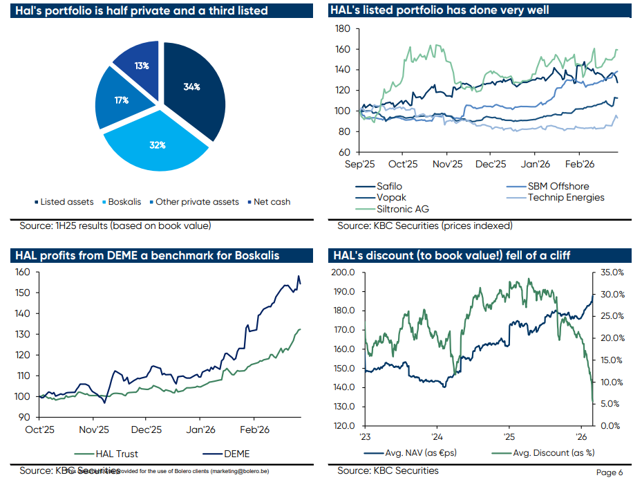 HAL Trust kende een sterke koersstijging sinds het voorjaar van 2025 en bereikte inmiddels het koersdoel van KBC Securities. De prestaties werden ondersteund door sterke bijdragen van zowel beursgenoteerde participaties (zoals Safilo, SBM Offshore en Siltronic) als private activa.