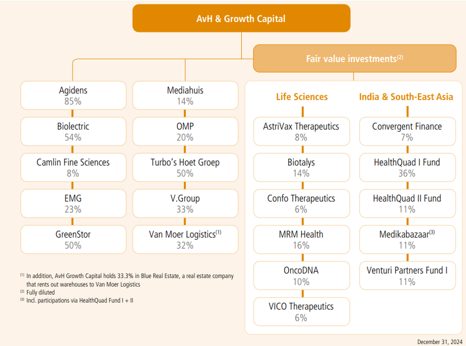 India’s grootste venture & growth capital fonds gericht op healthcare; AvH-participaties: HealthQuad Fund I 36,3% en Fund II 11% (niet geconsolideerd).