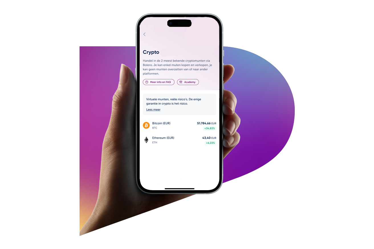 Bij Bolero kies je zelf in welke crypto je wil beleggen.